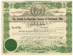 The Jewish Co-Operative Society of Cincinnati Capital Stock Certificate from 1920