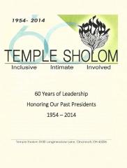 Temple Sholom 60 Years of Leadership, Booklet Honoring Our Past Presidents 1954-2014 (Cincinnati, OH)