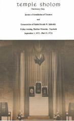 Temple Sholom Program for the Installation of Trustees and Consecration of Rabbi Donald M. Splansky, 1972 (Cincinnati, OH)