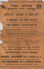 Poster Announcing the Celebration of the Beginning of a Jewish State Held at the Washington Ave. Synagogue / Kneseth Israel (Cincinnati, Ohio)