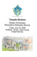Temple Sholom Golden Anniversary Renovation Dedication Service Program, 2006 (Cincinnati, OH)