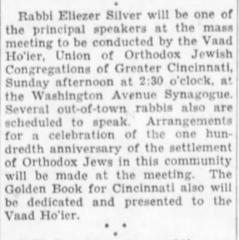 Articles Regarding Dedication of Pinkas Hazahav (The Golden Ledger) of Cincinnati’s Orthodox Community