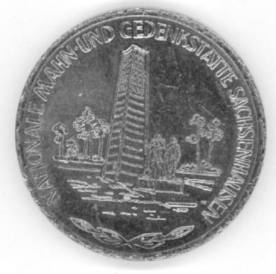 The Sachsenhausen Monument, known as the Memorial to Liberation, was designed by René Graetz and erected by the East German government in 1961. The Sachsenhausen Monument is dedicated to the political prisoners who were held there, mainly Communists and Social Democrats who opposed Hitler's Fascist regime. The political prisoners wore an identification badge which was in the shape of a red triangle. All three sides of the Sachsenhausen monument are decorated with red triangles in honor of the political prisoners, to the exclusion of all the other categories of inmates which included Jews, Gypsies, homosexuals, Jehovah's Witnesses, German criminals, asocials and the work-shy.